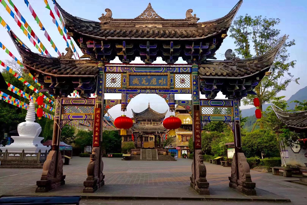 5.12大地震以后由廣東省援助,這里全新規(guī)劃建設(shè)了國家5A級風(fēng)景區(qū),古代阿壩州南部藏漢雜居地區(qū)的鄉(xiāng)鎮(zhèn)風(fēng)貌和民俗風(fēng)情得以再現(xiàn),水磨古鎮(zhèn)由此成為四川和重慶兩省市居民近便的休閑度假勝地。李仁奇 攝