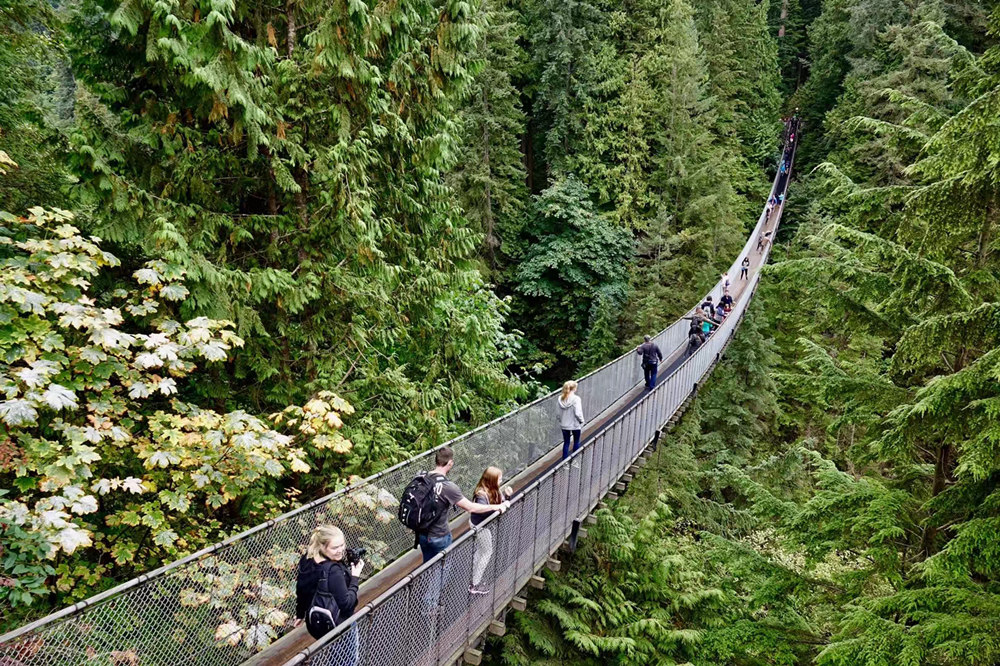 位于溫哥華北部的卡佩蘭奴吊橋,是溫哥華最具代表性和震撼力的名勝之一。它橫跨寬達450英尺的卡佩蘭奴河,懸掛在230英尺高空。李仁奇 攝