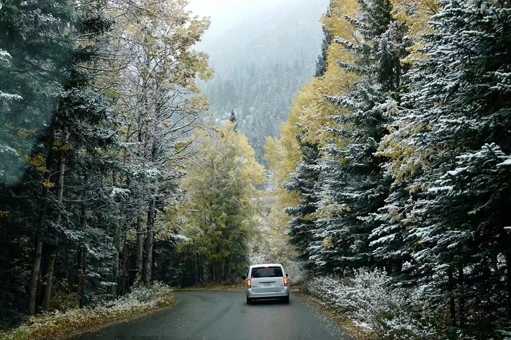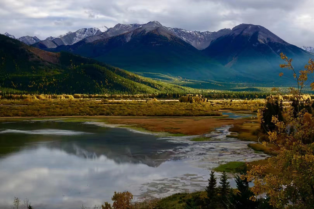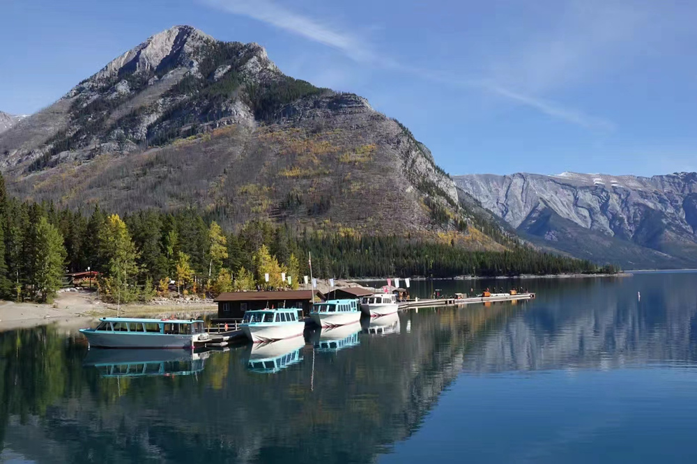 秋季是班夫最美的季節(jié),像九寨溝一樣,在藍(lán)色湖泊、綠色叢林之外,又多出了紅色和黃色的樹(shù)葉,映襯在白色的雪山之中,呈現(xiàn)出一個(gè)五彩繽紛的世界。李仁奇 攝