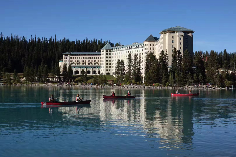 路易斯湖旁邊的城堡酒店。李仁奇 攝