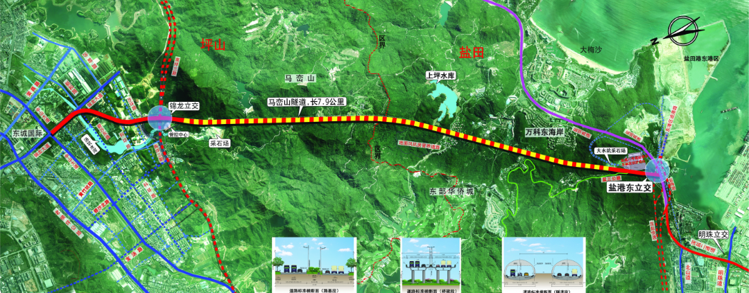 馬巒山隧道將坪山和鹽田聯(lián)結(jié)了起來。