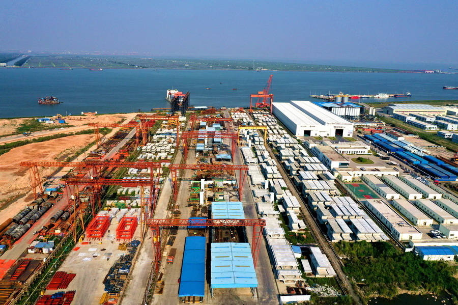坪鹽通道建設(shè)過程中,鹽港東立交裝配式施工圖。(資料圖)