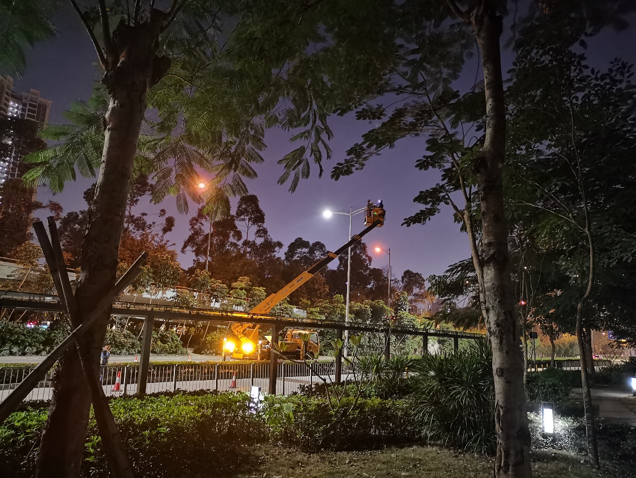 11月25日晚上8點(diǎn),記者在現(xiàn)場看到,該路段之前幾處破損、不亮的景觀燈已換好燈泡燈箱。同時(shí),在該路段外側(cè)馬路上,有著身穿“深圳照明”馬甲的工作人員正在對路燈進(jìn)行更換檢修?!斑@個(gè)之前有一些壞掉的或者不那么亮的燈泡,我們換新的之后,亮度會(huì)提升一些,也會(huì)對小路的光源進(jìn)行一個(gè)很好地補(bǔ)充”。相關(guān)工作人員告訴記者,后續(xù)也可能會(huì)對小路的景觀燈進(jìn)行升級(jí),改換成高的路燈,這還需要下一步的規(guī)劃設(shè)計(jì)。