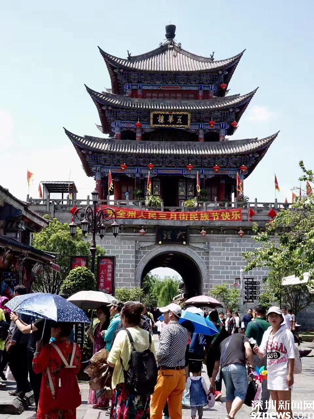 上世紀八十年代以后,大理陸續(xù)在遺留下來的300多米古城墻上重修了四座城門樓和城中心的“五華樓”,重現了古都風采,引來無數游客。李仁奇 攝