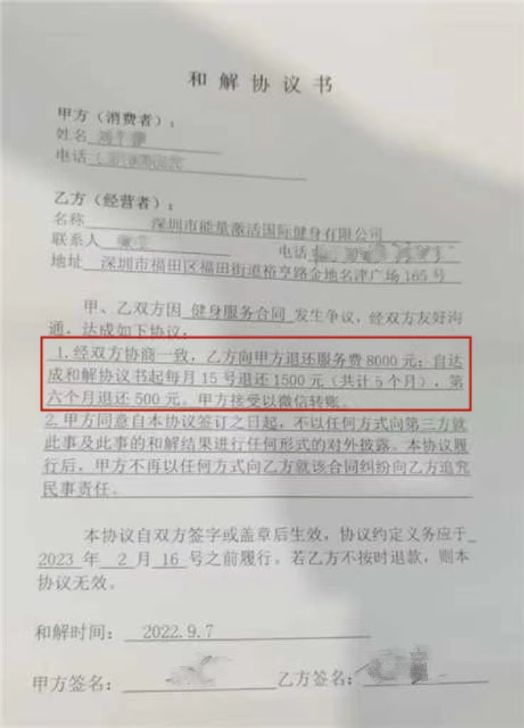 投訴對(duì)象:深圳市能量激活國(guó)際健身有限公司