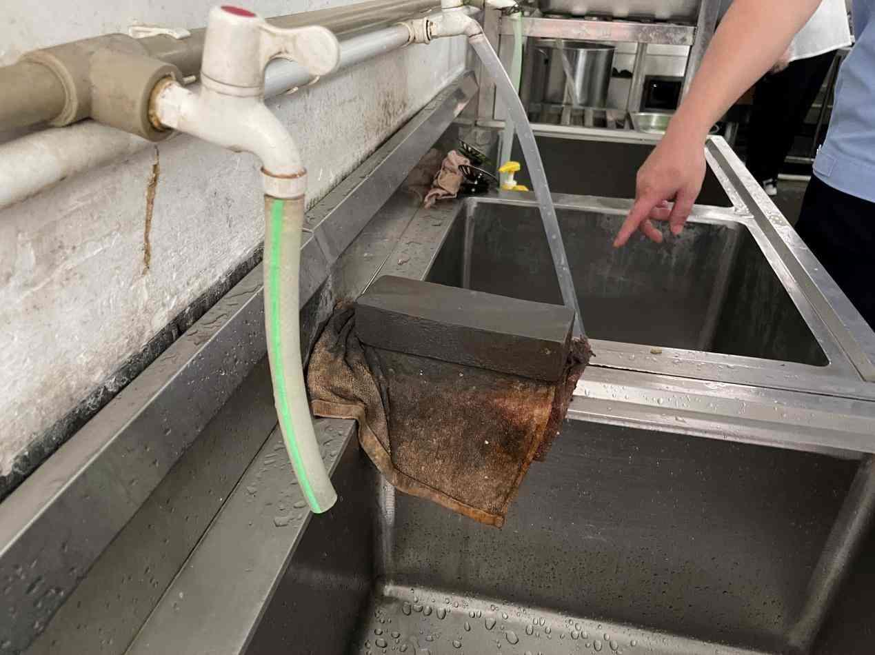 但在檢查中,執(zhí)法人員也發(fā)現(xiàn)了不少的問題。在粗加工區(qū),執(zhí)法人員發(fā)現(xiàn)蔬菜清洗池旁邊有一塊潔凈程度較差的磨刀石,要求食堂負(fù)責(zé)人將其清潔后移放別處,以防止對(duì)食材產(chǎn)生污染。進(jìn)入烹飪區(qū),執(zhí)法人員對(duì)食堂員工進(jìn)行了手部檢查,發(fā)現(xiàn)員工指甲偏長(zhǎng),要求盡快剪除。同時(shí),執(zhí)法人員發(fā)現(xiàn)烹飪區(qū)缺少燈具,光線較為昏暗,若鍋中有異物難以發(fā)現(xiàn),建議食堂負(fù)責(zé)人盡快安裝燈具。而在烹飪區(qū)的地面,執(zhí)法人員在排水渠盡頭發(fā)現(xiàn)了一個(gè)未加遮掩的大洞,執(zhí)法人員表示,這樣的大洞極容易造成老鼠、蟑螂等生物的入侵,要求食堂負(fù)責(zé)人盡快對(duì)此問題進(jìn)行整改。