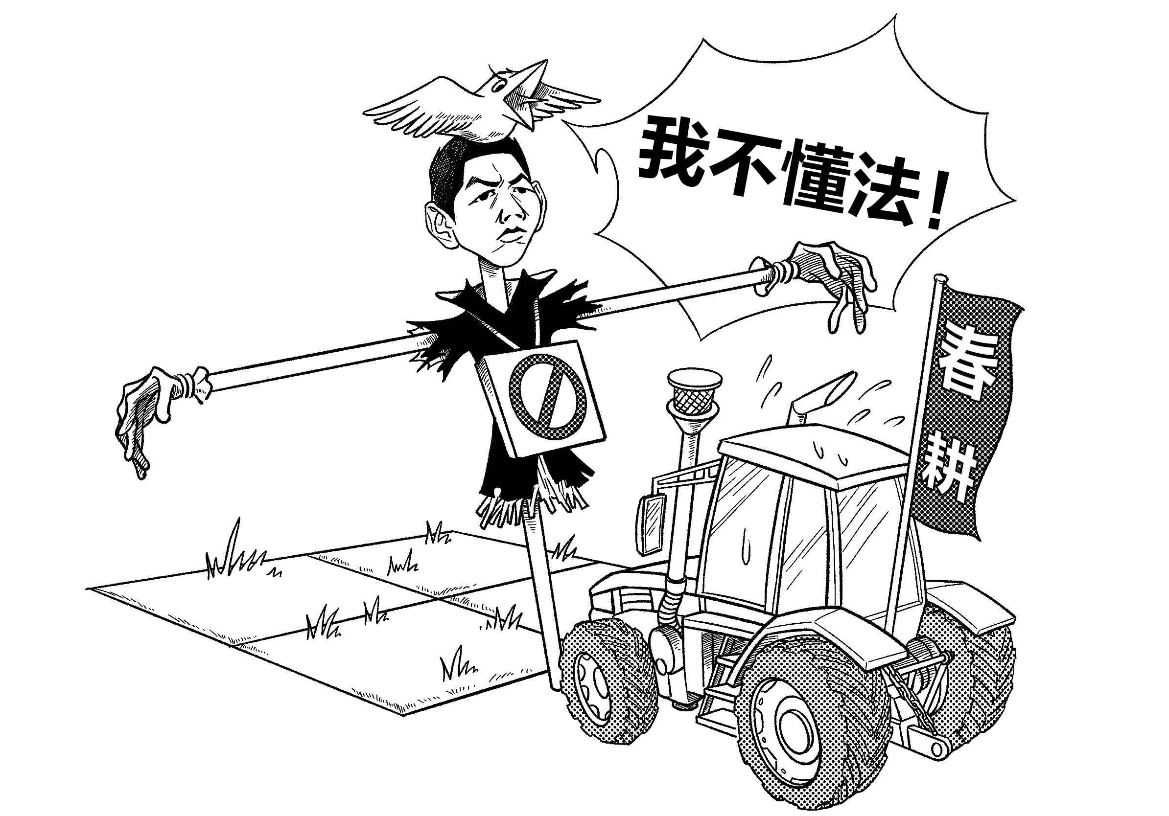 種地先交錢?近日,內(nèi)蒙古開魯縣一鎮(zhèn)干部因農(nóng)戶未“增補(bǔ)承包費(fèi)”,阻攔下地耕種并強(qiáng)力要求扣車,在糾紛中竟稱“我不懂法”。春耕農(nóng)忙誤不得,粗暴行政要不得!