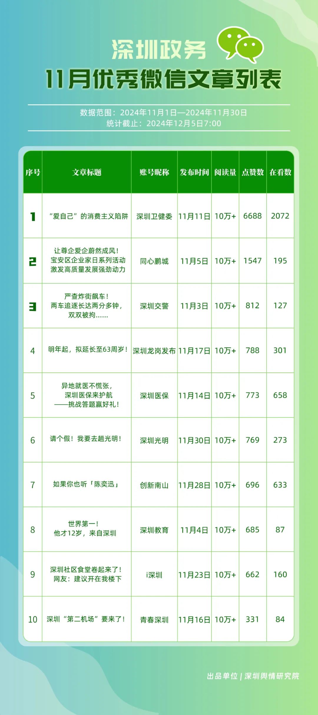 《深圳優(yōu)秀政務(wù)新媒體矩陣》2024年11月榜單揭曉,讓我們一同關(guān)注,哪些新媒體矩陣能夠憑借優(yōu)異表現(xiàn)嶄露新姿,成為加速政務(wù)傳播與服務(wù)創(chuàng)新發(fā)展的先鋒。