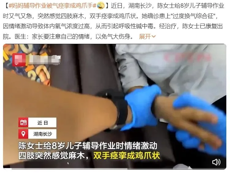 媽媽輔導(dǎo)作業(yè)被氣痙攣成雞爪手