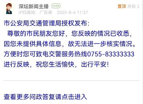 各職能單位如需對(duì)網(wǎng)友反映的問題進(jìn)行回應(yīng),可在深圳論壇注冊(cè)官方賬號(hào)并通過認(rèn)證,回帖進(jìn)行回應(yīng)。