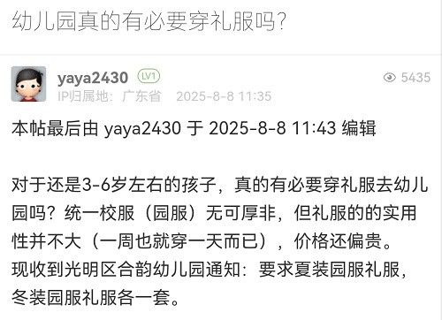 22. 帖文《幼兒園真的有必要穿禮服嗎?》