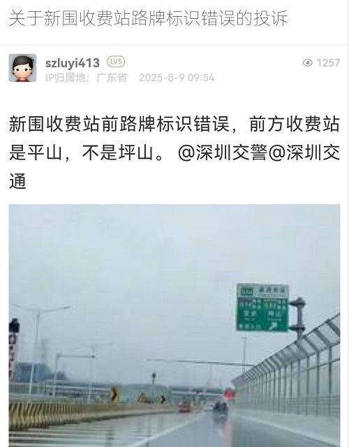 26. 帖文《關(guān)于新圍收費(fèi)站路牌標(biāo)識(shí)錯(cuò)誤的投訴》