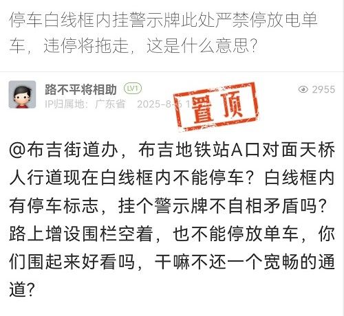 針對(duì)市民提及“白線框內(nèi)有停車標(biāo)志,掛個(gè)警示牌不自相矛盾嗎?”的問題。經(jīng)核實(shí),市民提及的問題處已被規(guī)劃為不可停放區(qū)域,禁停標(biāo)識(shí)及鐵馬圍擋是為清除白線框施工而設(shè)置的臨時(shí)空間預(yù)留措施,對(duì)此給市民帶來的誤解以及不便,我們深表歉意。目前該處白線停車框及禁停標(biāo)識(shí)已一并清除。