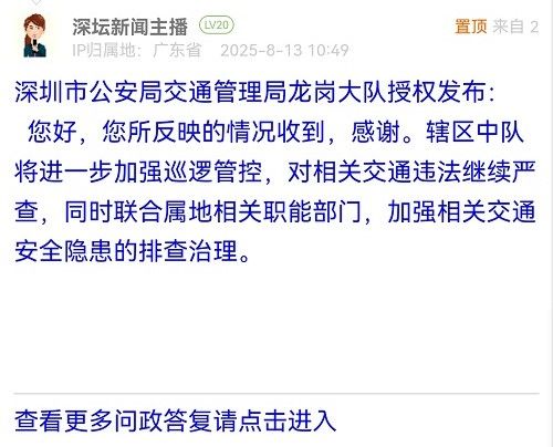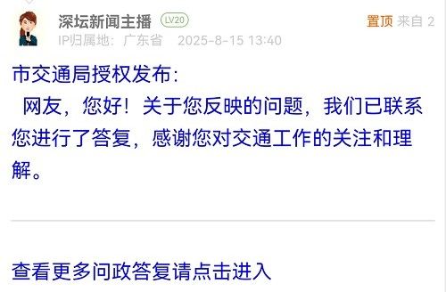 各職能單位如需對(duì)網(wǎng)友反映的問題進(jìn)行回應(yīng),可在深圳論壇注冊(cè)官方賬號(hào)并通過認(rèn)證,回帖進(jìn)行回應(yīng)。