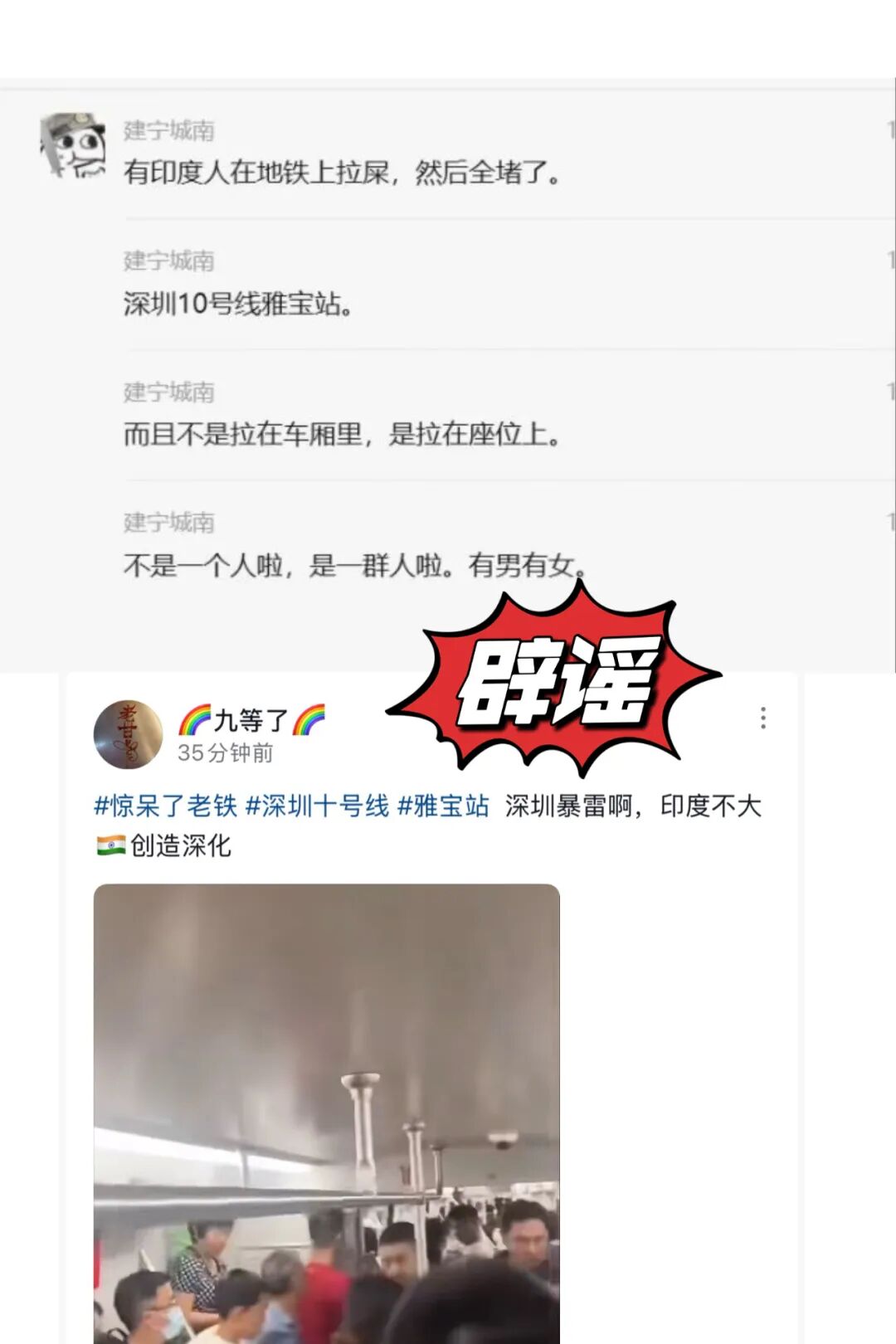 近日,在抖音、小紅書等平臺,有用戶傳播“印度人在深圳地鐵大便”的消息,并搭配乘客在地鐵車廂內(nèi)往同一方向奔走的視頻。