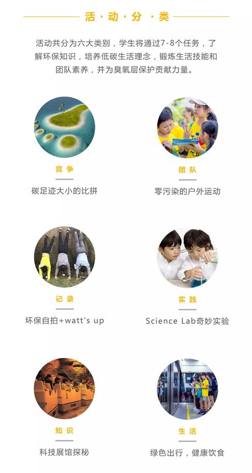 1.在一天時間內(nèi)挑戰(zhàn)“臭氧英雄·低碳足跡”國際主題活動,學(xué)習(xí)低碳生活技能,感受中英雙語課堂;