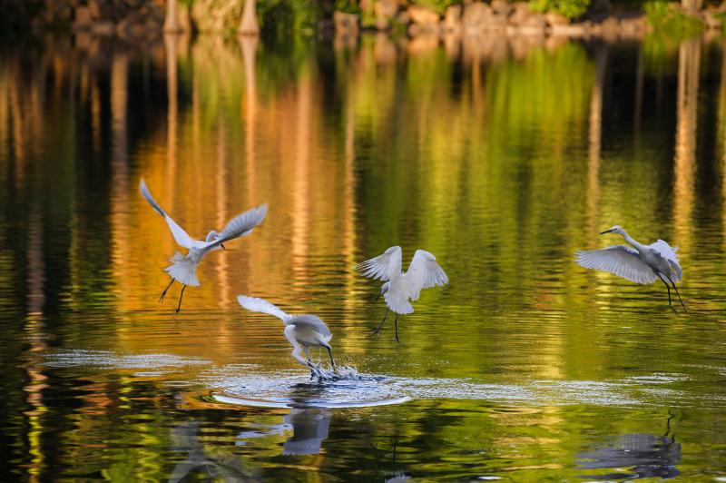 《湖上白鷺群》 作者:李敏清