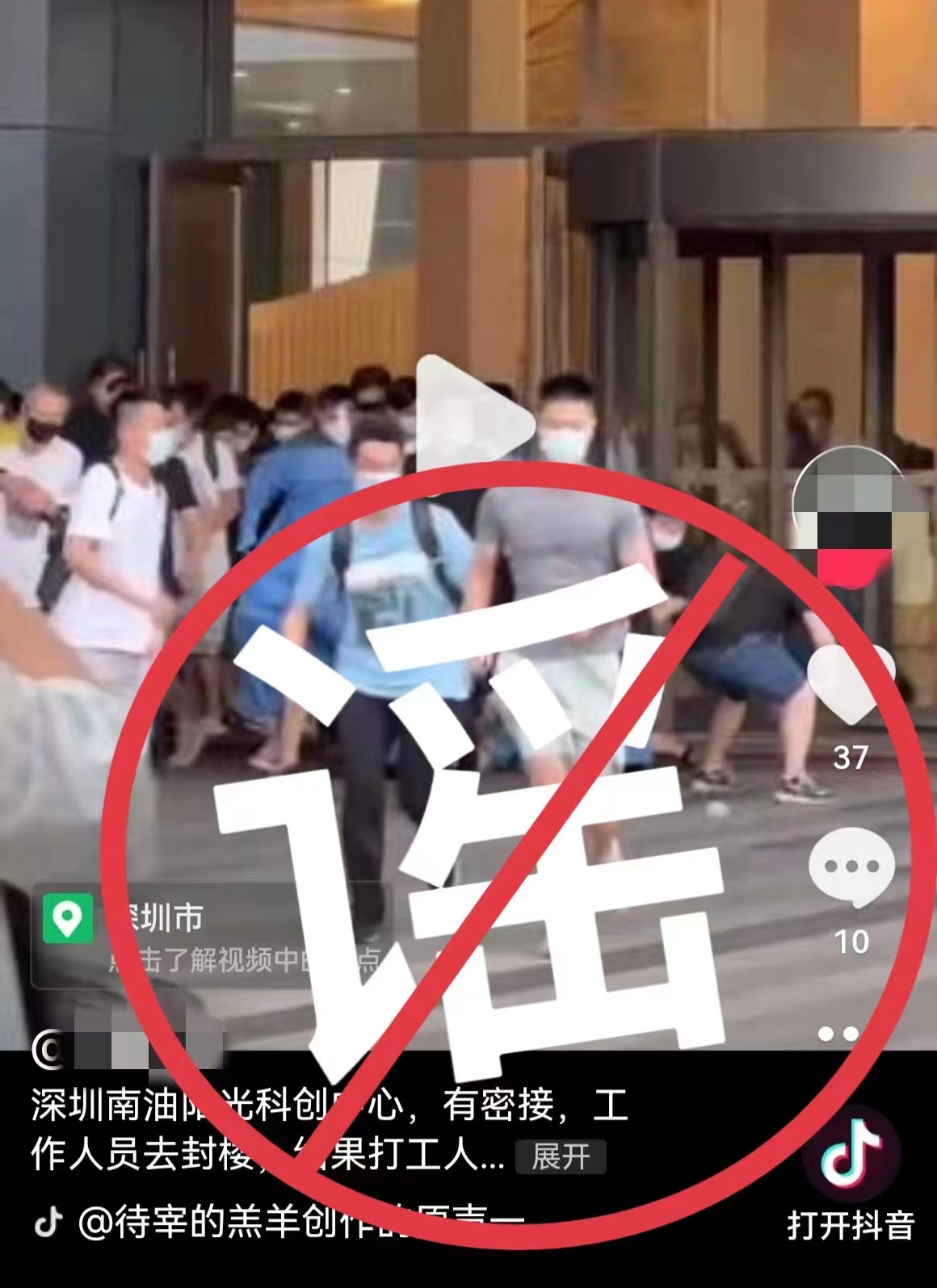 8月12日,抖音客戶端有網(wǎng)民發(fā)布視頻,南山區(qū)陽光科創(chuàng)中心有密切接觸者,工作人員去封樓,結(jié)果人們聽到消息紛紛沖出大樓,工作人員根本無法阻攔。